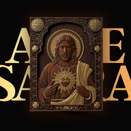 Nesta obra, a arte e a fé se unem para celebrar o amor dos Três Sagrados Corações.